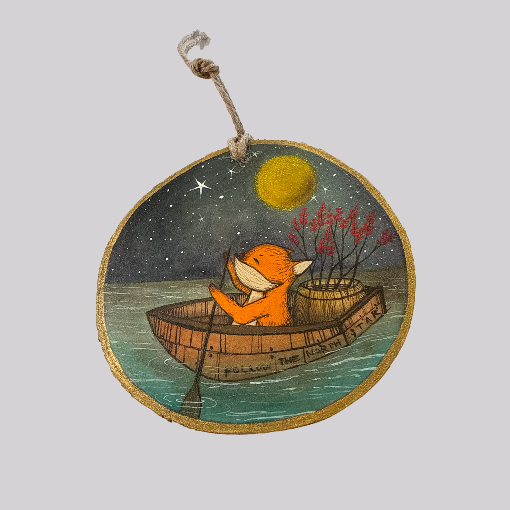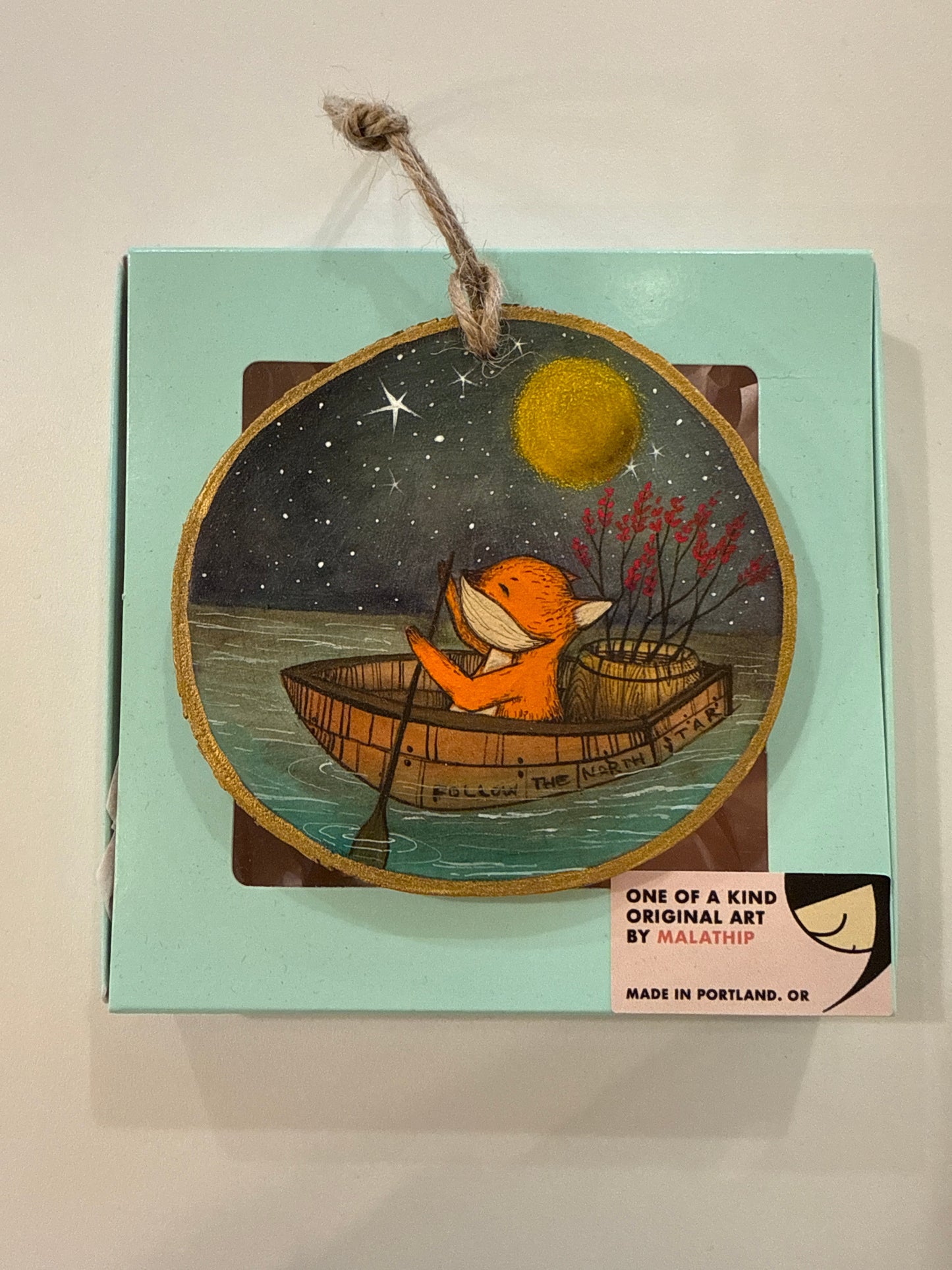 This is a one of a kind original painting of a red fox on their adventure. Their mission is to follow the North Star.